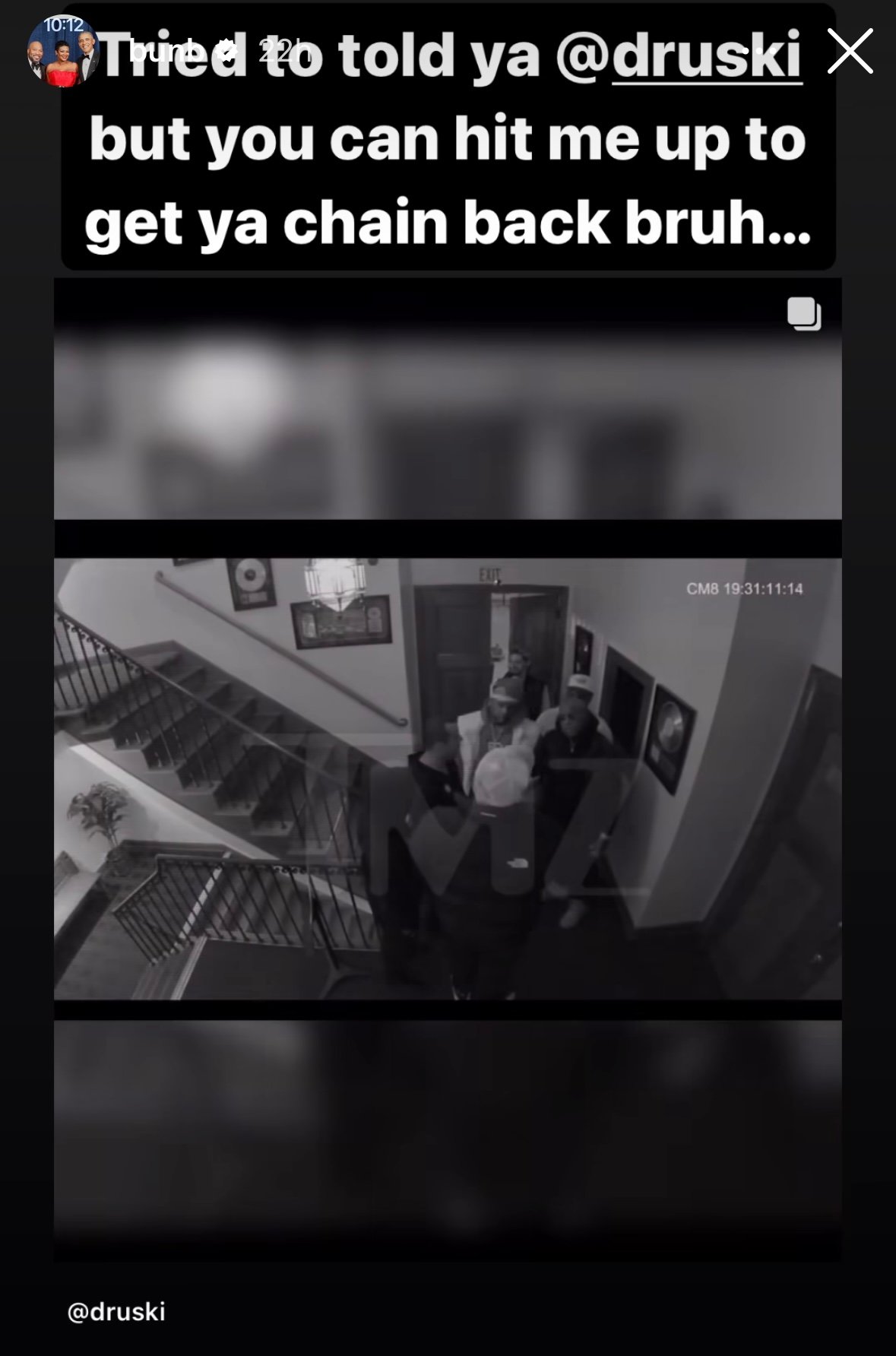 “Tried to told ya @druski but you can hit me up to get ya chain back bruh,” he wrote on his Instagram Stories.