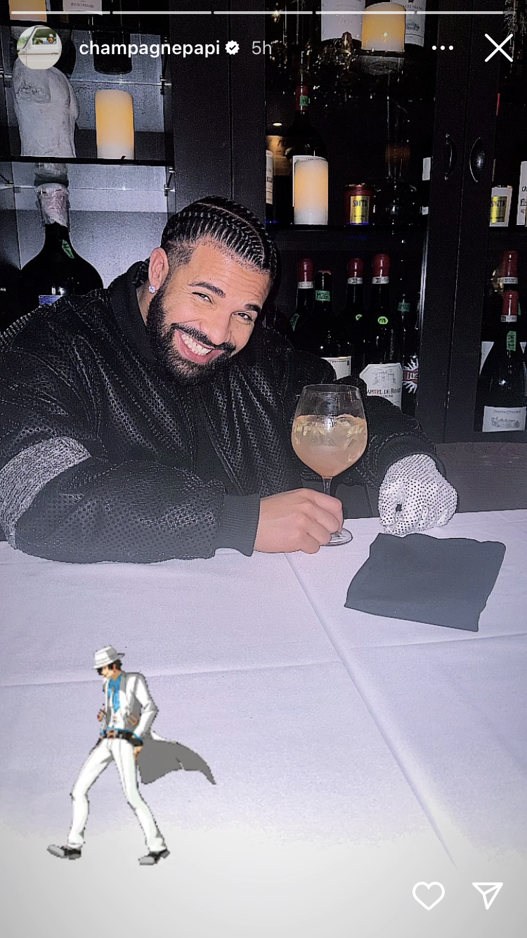 To celebrate, Drizzy took to Instagram to share an edited selfie of the late King of Pop wearing an OVO hoodie along with the caption: “Mooooooooood,” as well as a photo of himself wearing a sparkly, MJ-inspired glove while out at dinner.