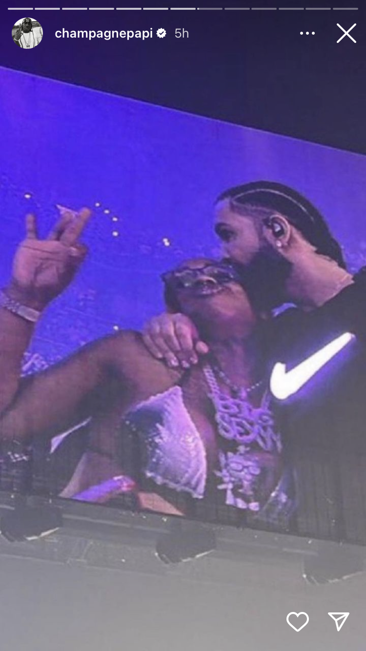 It wasn’t just backstage where the smooching happened, though. The OVO Sound hitmaker also shared a photo of him kissing Sexyy Red’s cheek during the show itself as he embraced her in the VIP section.