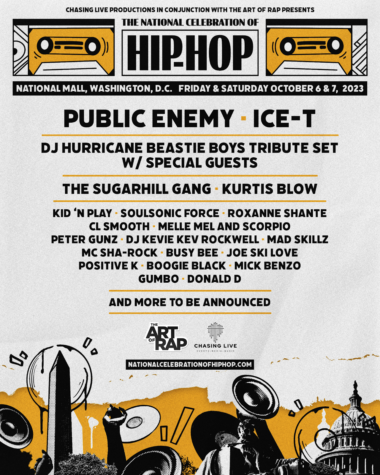 “We are honored to continue to celebrate the 50th Anniversary of Hip Hop against the backdrop of America’s Capitol with a free event for everyone. I can’t wait to get on stage and do our thing,” Public Enemy’s Flavor Flav said of the festival in a statement.