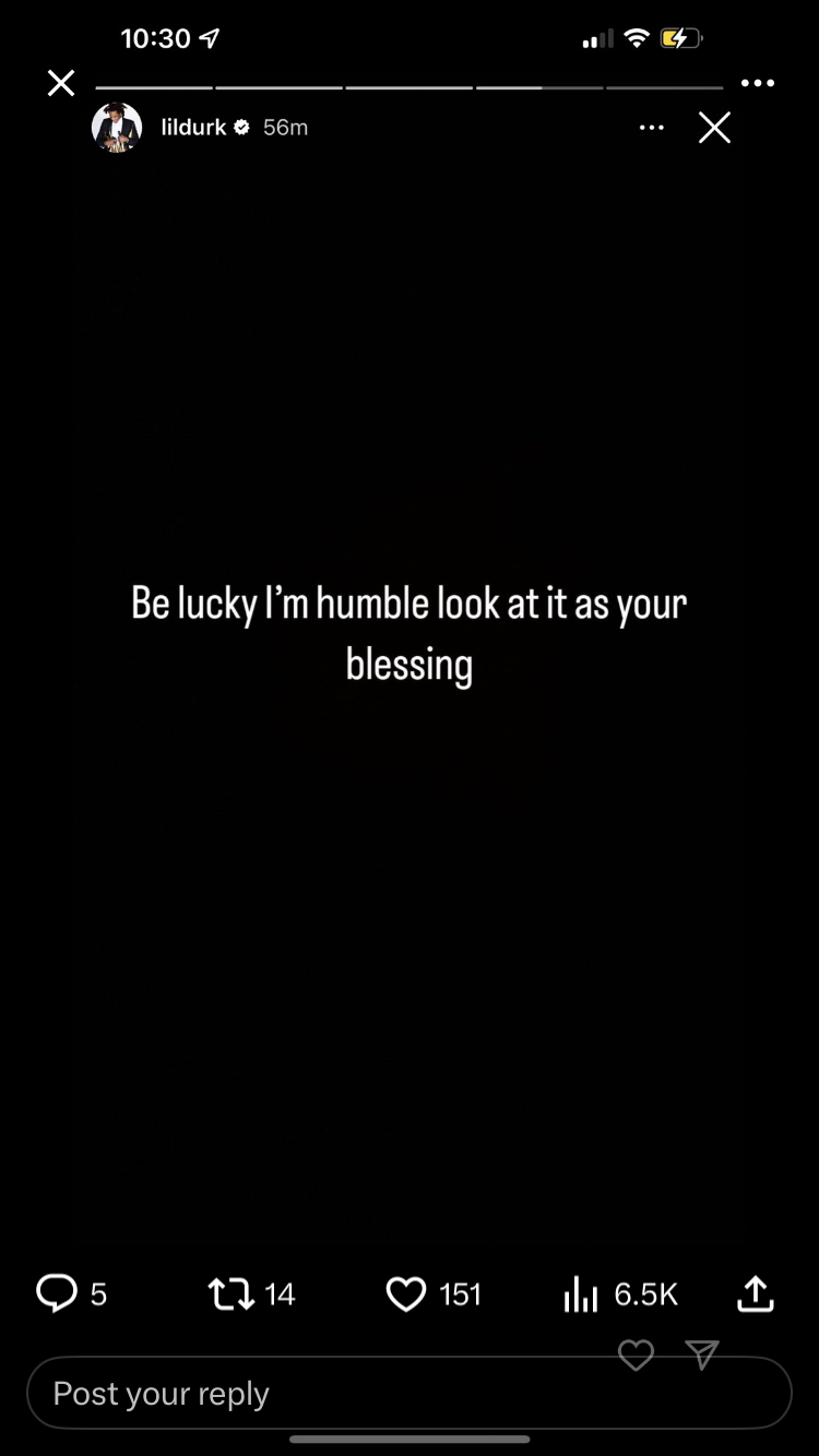 Durk appeared to react to being removed from the song on his Instagram Stories, writing: “Be lucky I’m humble look at it as your blessing.”